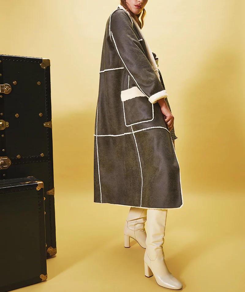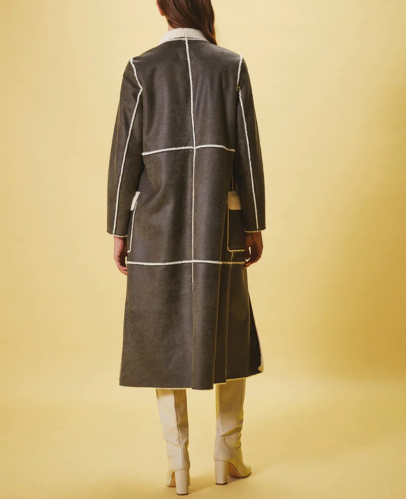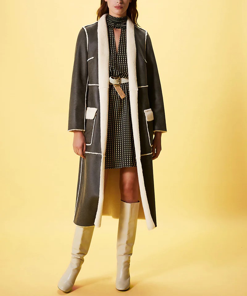 L’ Eco-Pelliccia Prim NENETTE, è un cappotto in eco-pelliccia reversibile con tasche a toppa e cintura per evidenziare il punto vita.