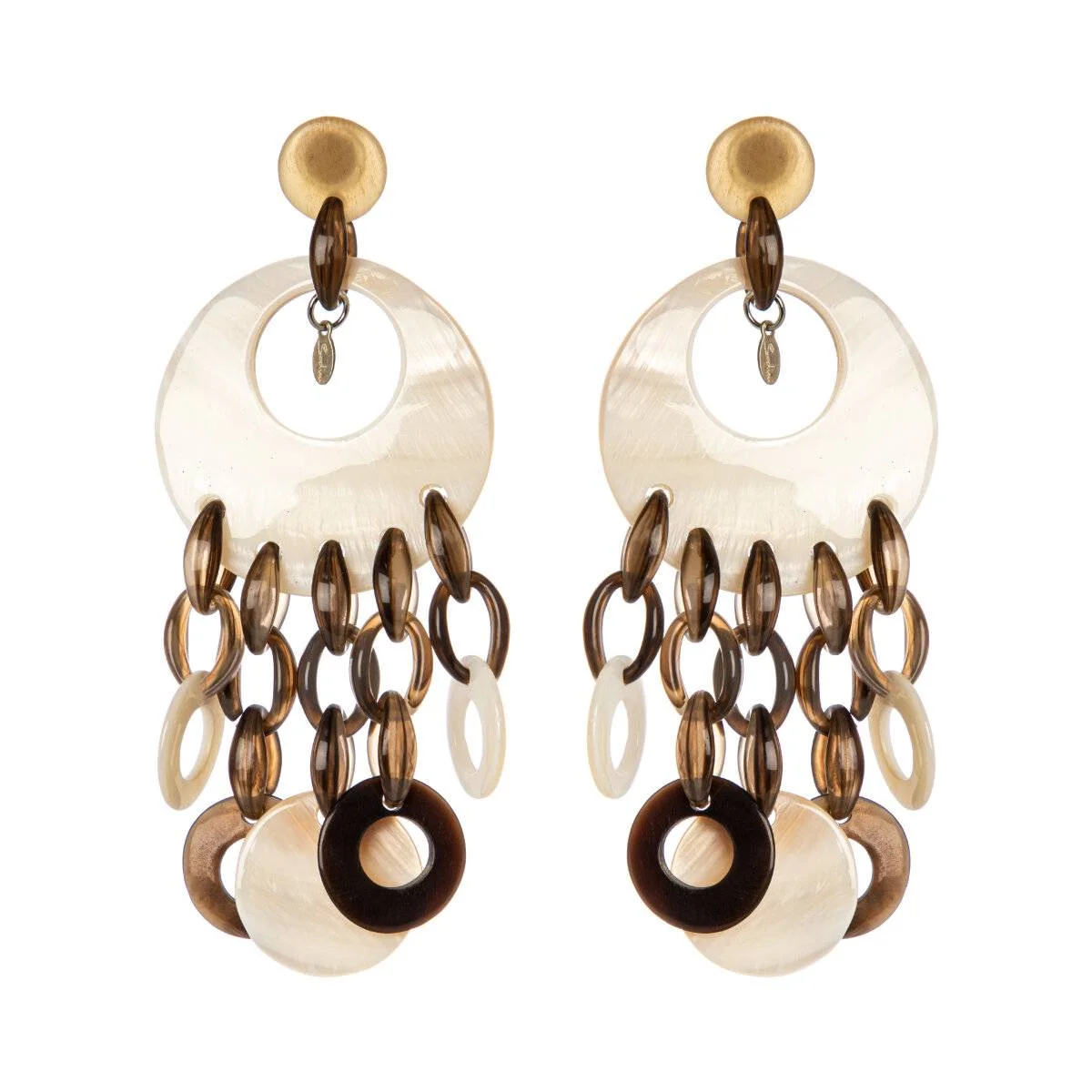 Gli orecchini Sodini con pendente e anellini sono realizzati in resina e madreperla.
