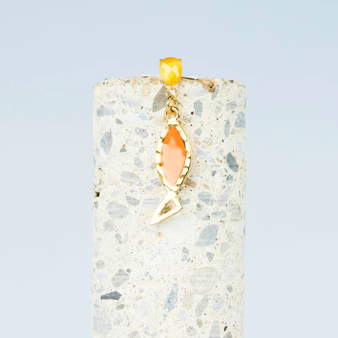 L’ Orecchino Color Fish ALMALA, è un gioiello unico che impreziosirà il tuo look con un tocco di colore e allegria. L’orecchino Color Fish si distingue per il suo pendente a forma di pesce stilizzato su base dorata, con un gioco a contrasto colorato nel mezzo, che dona al gioiello un tocco di originalità e fascino. La pietra colorata aggiunge un tocco di vivacità.