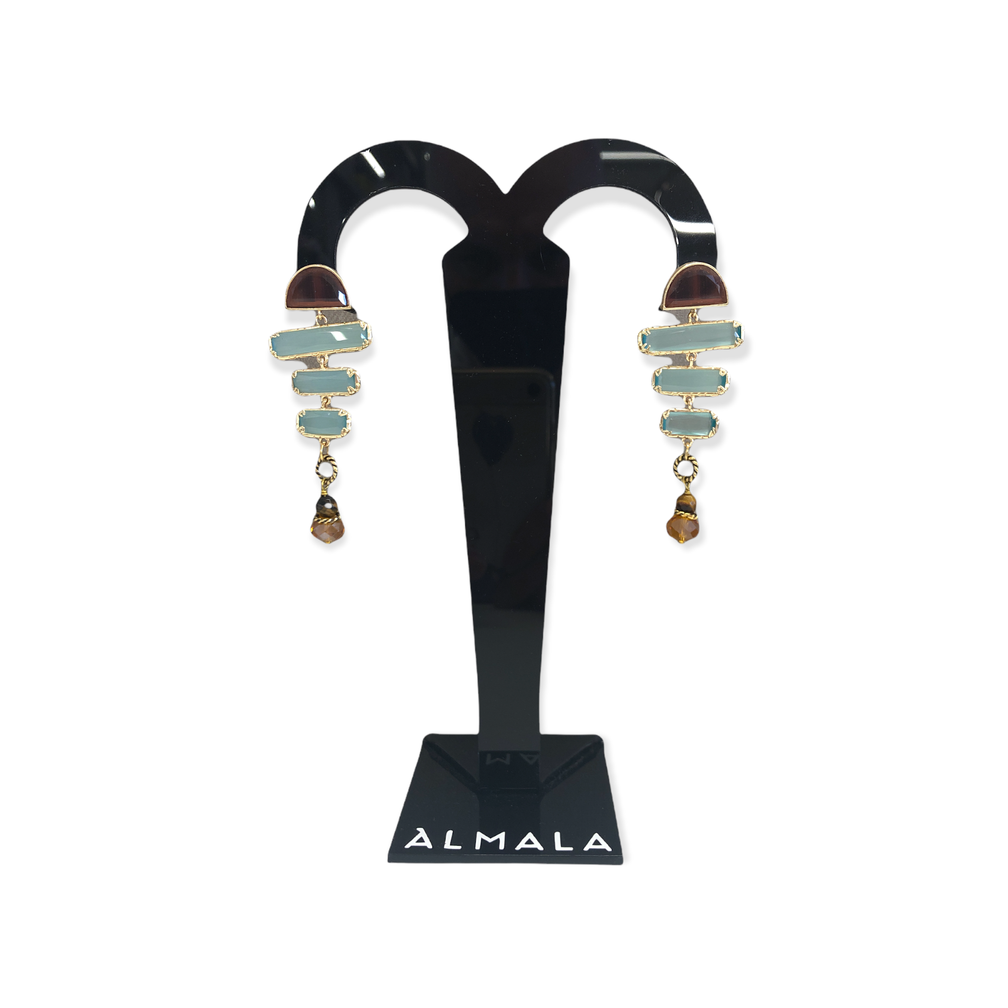L’ orecchino Multicolor ALMALA, è un orecchino multicolor con quarzi in taglio baguette rifiniture in ottone.